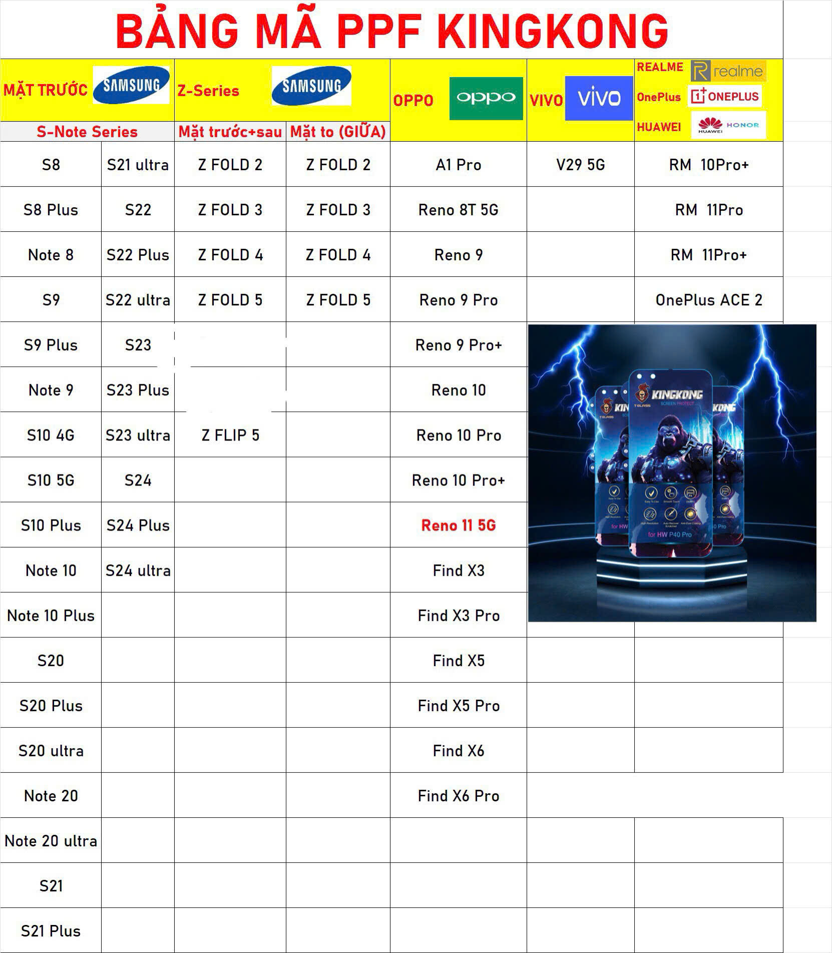PPF kingkong hàng công ty em về đủ full bảng mã